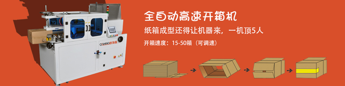 開箱機(jī)也叫紙箱成型機(jī),箱子底部按一定程序折合,并用膠帶密封后輸送給裝箱機(jī)的專用設(shè)備。自動(dòng)紙箱成型機(jī)、自動(dòng)開箱機(jī)是大批量紙箱自動(dòng)開箱、自動(dòng)折合下蓋、自動(dòng)密封下底膠帶的流水線設(shè)備,機(jī)器采用顯示屏控制,大大方便操作,是自動(dòng)化規(guī)模生產(chǎn)必不可少的設(shè)備。